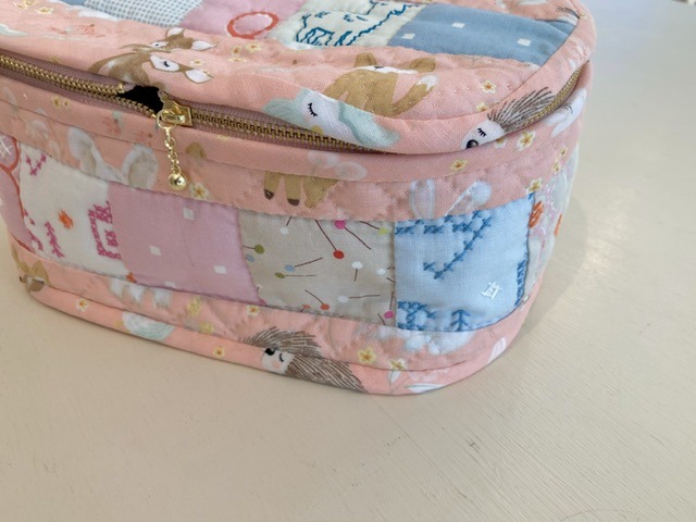 四角つなぎのパッチワークをしたソーイングケースが完成しました。