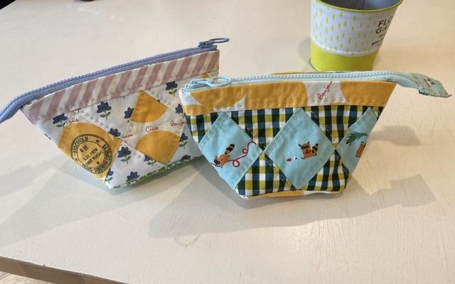 ケイフファセットの柄を組み合わせてポーチを制作されています。