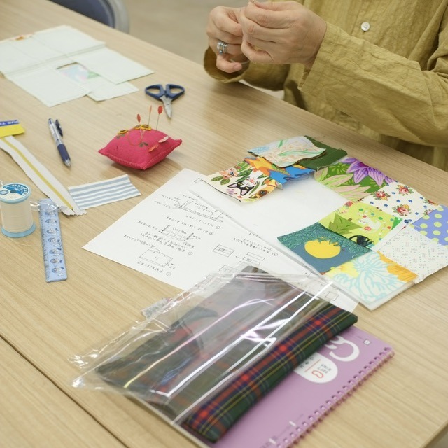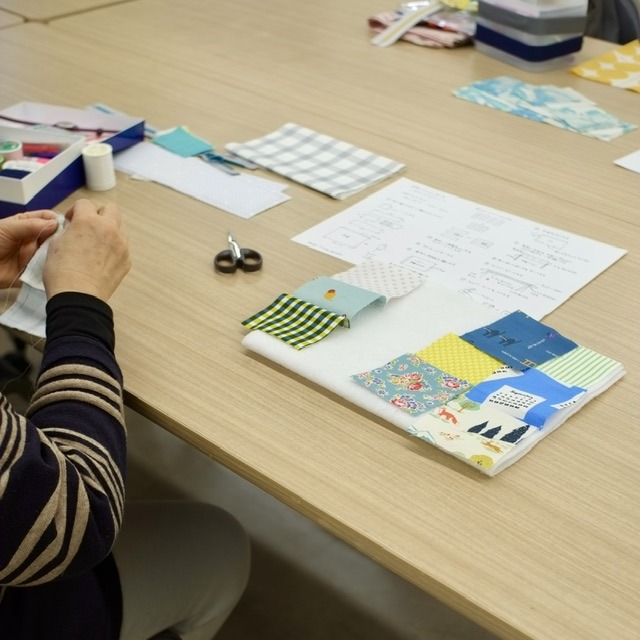 パッチワークの基本、四角つなぎを学びながらポーチを作っています。