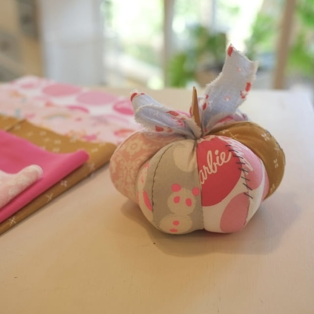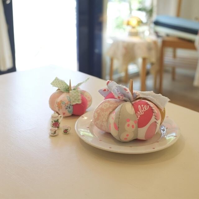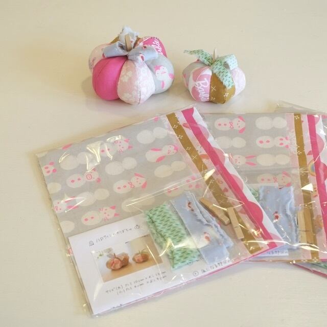 ピンク系布を組み合わせた可愛い立体のかぼちゃが作れるセットです。