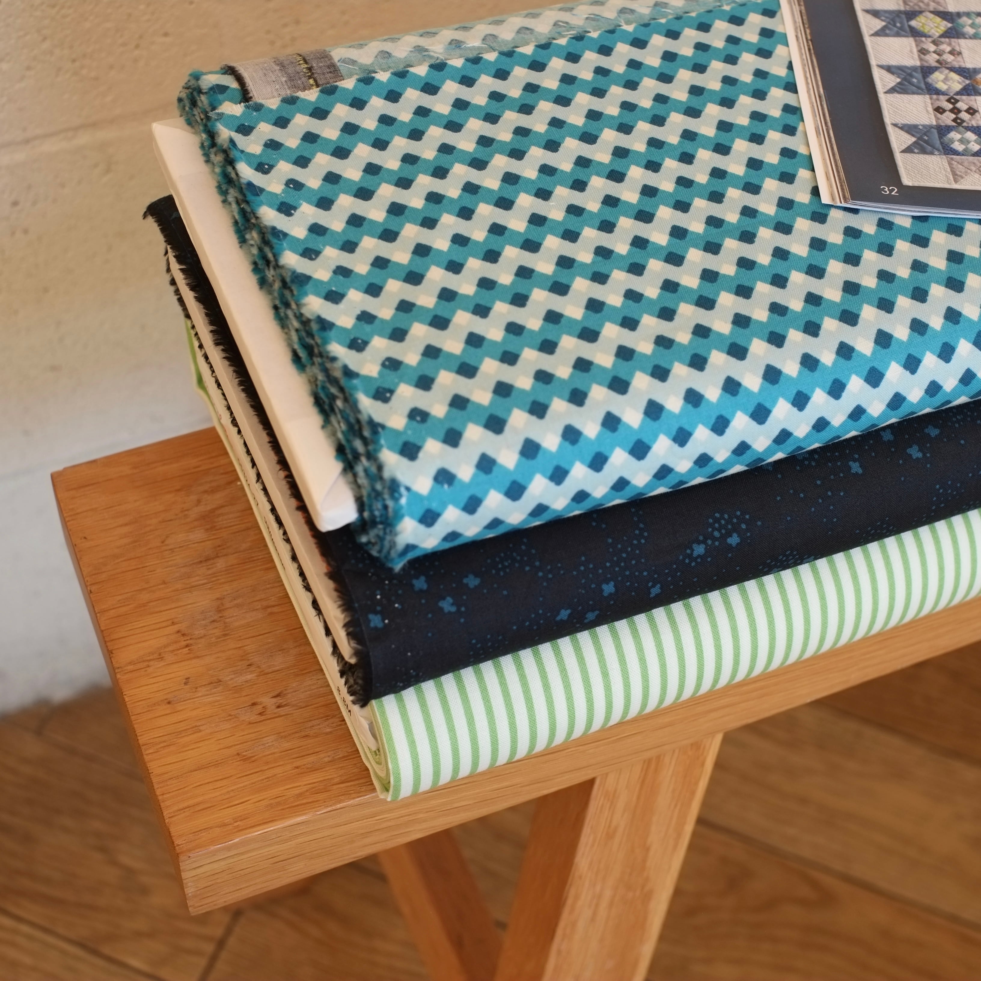 ブルー系の色で構成された個性的な生地です。