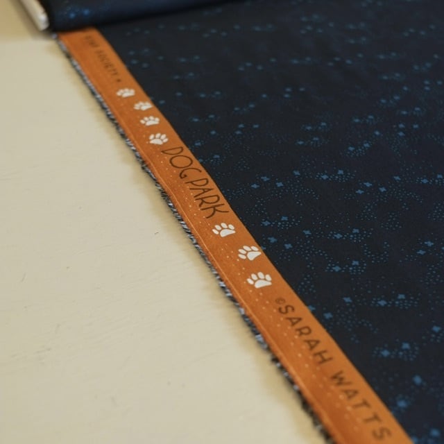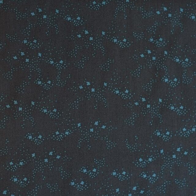 紺色にブルーの花が描かれた可愛らしいデザインの生地です。