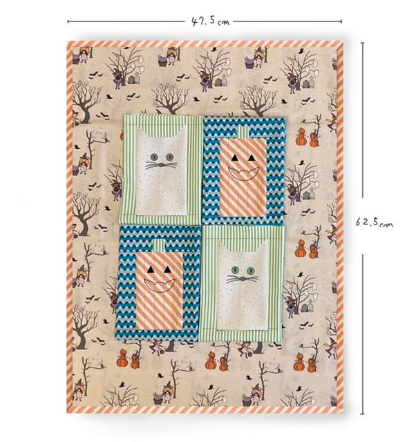 猫とかぼちゃが並んだハロウィンにぴったりのキルトができるレシピです。