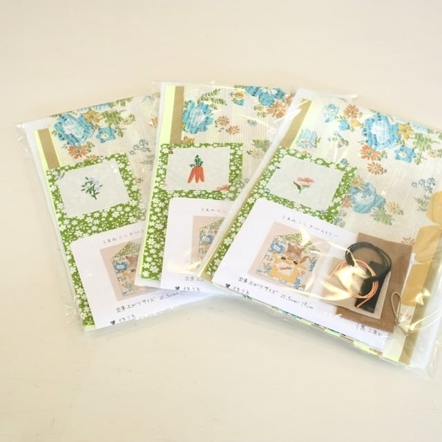 セット内容:布、接着キルト芯、フェルト、刺繍糸、壁掛け紐、作り方レシピ