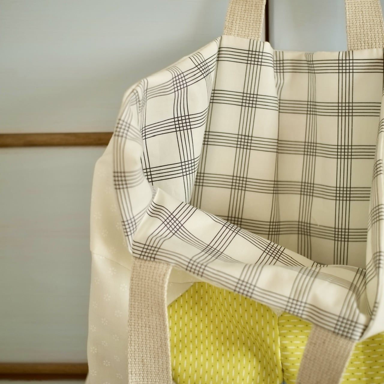 真ん中にパッチワークのパターンを入れたバッグのレシピです。