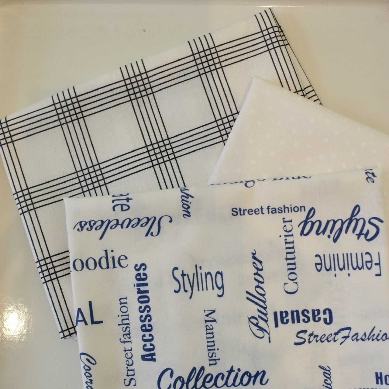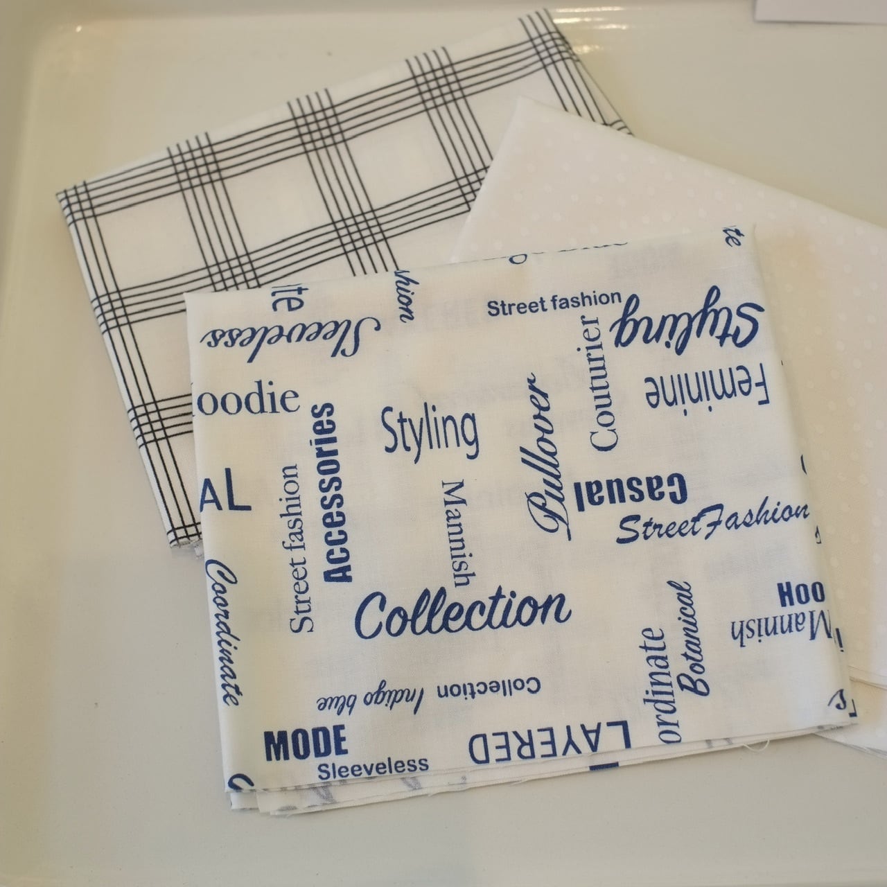 爽やかな白地の生地をセットにしてお届けいたします。